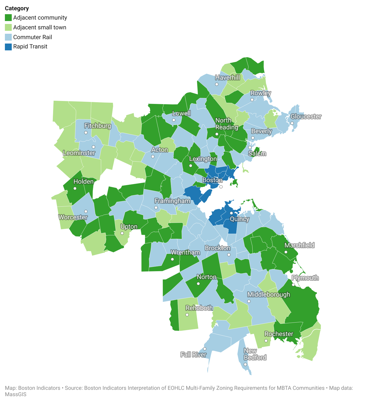 Adjacent Communities were not the top priority behind the creation of the MBTA Communities Law. But many do have decent access to transit and, as this analysis shows, some of them are using this new requirement as an opportunity to loosen their zoning restrictions while others are opting for a more "paper compliance" approach. And while overall the law will likely lead to new housing near transit stops, these communities demonstrate that that will not always be the case.