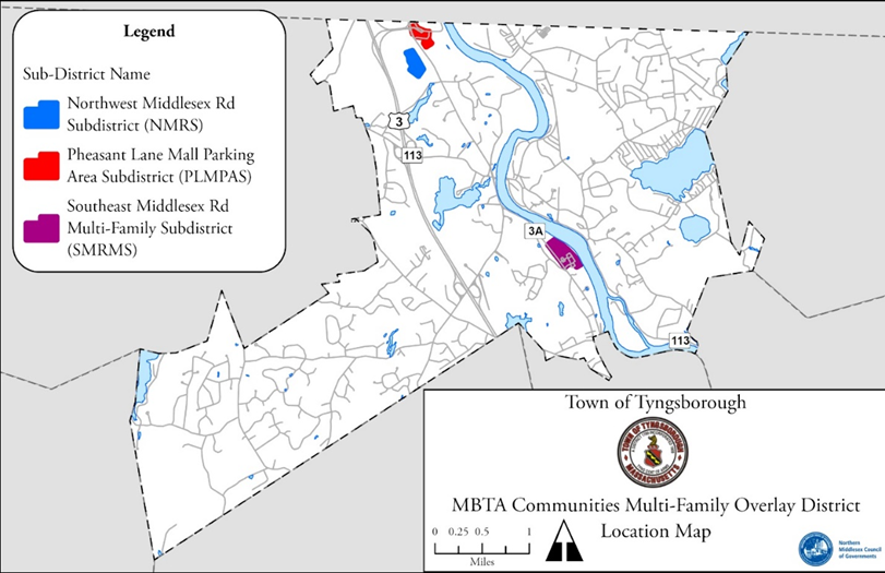 In contrast, Tyngsborough’s compliance plan seems to comprise a mix of already-built apartment complexes and currently unused or underutilized parcels that could attract new housing construction. Tyngsborough’s district is only 54.8 acres, but within that is a sizeable 11-acre parking lot adjacent to the Pheasant Lane Mall (itself technically in New Hampshire). There are also a few other parcels categorized as “Developable Commercial Land” and “Potentially Developable Industrial Land.” According to Town Planner and Economic Development Director Eric Salarno, the Pheasant Lane Mall parking lot is the most likely to be developed in the near future, the Lowell Sun reported.