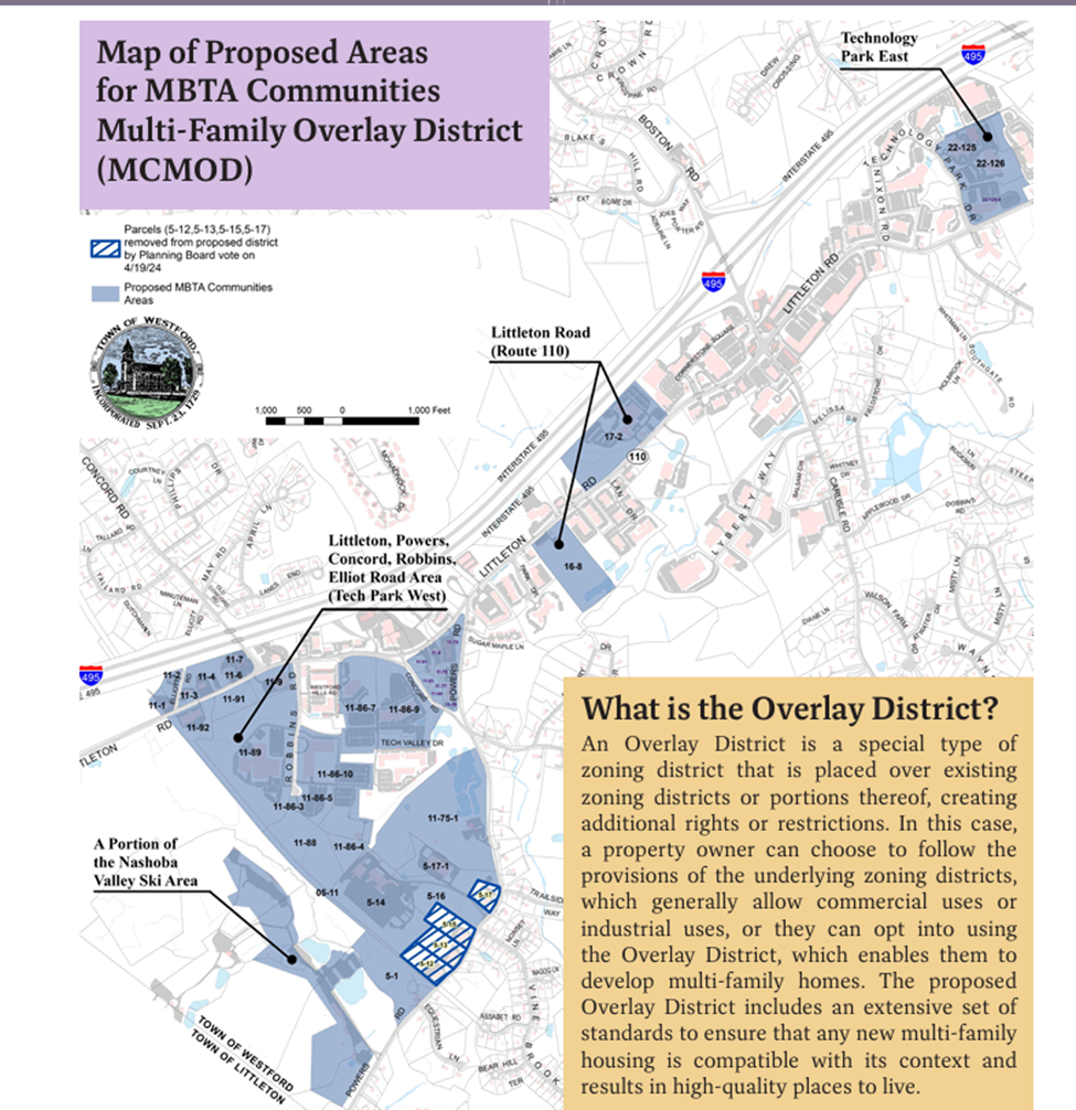 Nonetheless, there are numerous plots that have redevelopment potential and seem to have been explicitly included because of this fact. Among these are a former Swimming & Tennis Club that was sold in 2023 and a current building materials site that is under contract to be acquired by a major developer. Also included is the Nashoba Valley Ski Resort, which according to the town “Seeks to expand their commercial recreation uses to be more year-round and construct a mixed-use development.” All in all, Westford stands out as one of the more ambitious municipalities thus far.