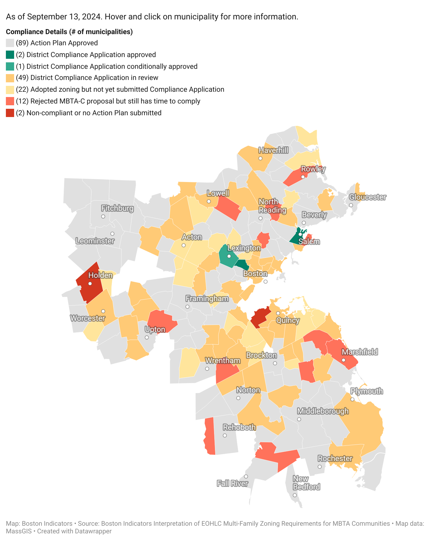 THIS FALL: The December deadline applies to 130 municipalities. So far 59 of them have passed zoning to comply. Meaning, eyes are on the other 71 this fall! Several communities voted down proposals last spring, and some opted to delay their votes until after the SJC hears the Milton case, which is scheduled for October. Most of the communities are now preparing proposals to be voted on by Town Meeting or City Council.